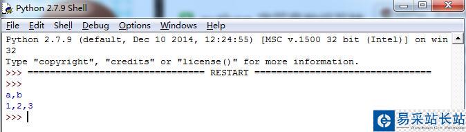 #方法1arr = ['a','b']str1 = ','.join(arr)print str1#方法2arr = [1,2,3]#str = ','.join(str(i) for i in arr)#此處str命名與str函數(shù)沖突!str2 = ','.join(str(i) for i in arr)print str2