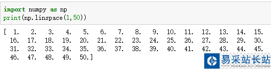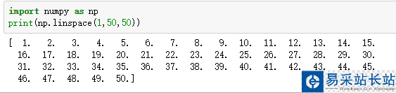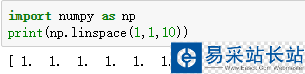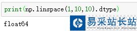 還可以看一下linspace創建的數組的元素的數據格式,當然是浮點型。