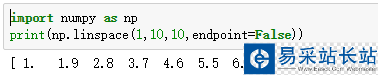 import numpy as npprint(np.linspace(1,10,10,endpoint=False))