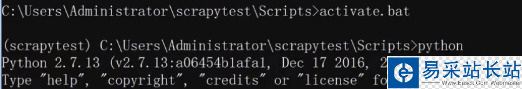 安裝好后輸入activate.bat進入虛擬環境后輸入python查看當前python版本為2.7