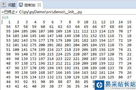 #coding:utf-8n = int(raw_input('>'))#初始化數組arr = [[0]*n for i in range(n)]#遞歸解決def dfs(arr, x, y, start, n):  if n<=0:return 0  if n==1:    arr[x][y] = start    return 0  #up  for i in range(n):    arr[x][y+i] = start    start += 1  #right  for i in range(n-1):    arr[x+1+i][y+n-1] = start    start += 1  #down  for i in range(n-1):    arr[x+n-1][y+n-2-i] = start    start += 1  #left  for i in range(n-2):    arr[x+n-2-i][y] = start    start += 1  dfs(arr,x+1,y+1,start,n-2)a = dfs(arr,0,0,1,n)#格式化輸出printl = len(str(n*n))+1format = ('%'+str(l)+'d')*nfor tmp in arr:  print format%tuple(tmp)運行結果: