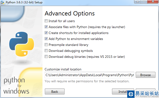 然后可以默認安裝路徑,也可以選擇自定義安裝,就是costomize installation,路徑中應該是不能有中文。如下: