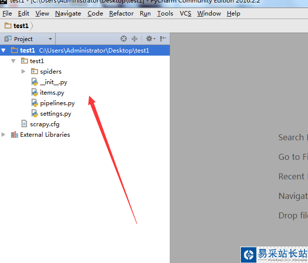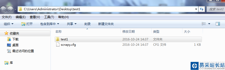 首先得有一個Scrapy項目,我在Desktop上新建一個Scrapy的項目叫test,在Desktop目錄打開命令行,鍵入命令:scrapy startproject test1