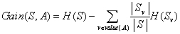 其中value(A)是屬性A所有可能值的集合, 是S中屬性A的值為v的子集,即