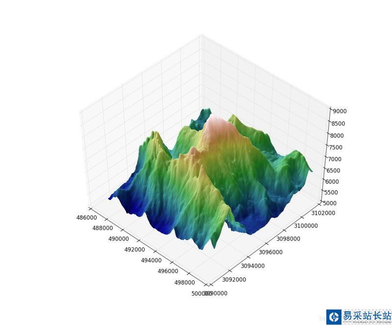 # -*- coding: gbk -*-from mpl_toolkits.mplot3d import Axes3Dfrom Matplotlib import cbookfrom Matplotlib import cmfrom Matplotlib.colors import LightSourceimport Matplotlib.pyplot as pltimport numpy as npfrom osgeo import gdalgdal.AllRegister()filePath = u"E:/桌面/dem實驗/Himalaya.tif" #輸入你的dem數據dataset = gdal.Open(filePath)adfGeoTransform = dataset.GetGeoTransform()band = dataset.GetRasterBand(1) #用gdal去讀寫你的數據,當然dem只有一個波段nrows = dataset.RasterXSize ncols = dataset.RasterYSize #這兩個行就是讀取數據的行列數Xmin = adfGeoTransform[0] #你的數據的平面四至Ymin = adfGeoTransform[3]Xmax = adfGeoTransform[0] + nrows * adfGeoTransform[1] + ncols * adfGeoTransform[2]Ymax = adfGeoTransform[3] + nrows * adfGeoTransform[4] + ncols * adfGeoTransform[5]x = np.linspace(Xmin,Xmax, ncols)y = np.linspace(Ymin,Ymax, nrows)X,Y = np.meshgrid(x, y)Z = band.ReadAsArray(0, 0,nrows, ncols) #這一段就是講數據的x,y,z化作numpy矩陣region = np.s_[10:400,10:400]X, Y, Z = X[region], Y[region],Z[region]fig, ax = plt.subplots(subplot_kw=dict(projection='3d'), figsize=(12,10))ls = LightSource(270, 20) #設置你可視化數據的色帶rgb = ls.shade(Z, cmap=cm.gist_earth, vert_exag=0.1, blend_mode='soft')surf = ax.plot_surface(X, Y, Z, rstride=1, cstride=1, facecolors=rgb, linewidth=0, antialiased=False, shade=False)plt.show() #最后渲染出你好看的三維圖吧