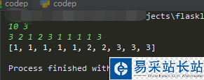 (m, n) = input().split()ar = [int(x) for x in input().split()]result = []res = [0 for x in range(20)]for a in ar:  res[a-1]+=1for r in res:  if r != 0:    result.append(str(r))print(' '.join(result))以上的而核心代碼就在于這兩行