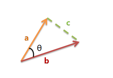 以二維空間為例,上圖的a和b是兩個(gè)向量,我們要計(jì)算它們的夾角θ。余弦定理告訴我們,可以用下面的公式求得: