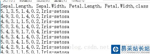 #coding=utf-8import math#定義鳶尾花的數據類class Iris: data=[] label=[] pass#定義一個讀取鶯尾花數據集的函數def load_dataset(filename="Iris_train.txt"): f=open(filename) line=f.readline().strip() propty=line.split(',')#屬性名 dataset=[]#保存每一個樣本的數據信息 label=[]#保存樣本的標簽 while line: line=f.readline().strip() if(not line): break temp=line.split(',') content=[] for i in temp[0:-1]: content.append(float(i)) dataset.append(content) label.append(temp[-1]) total=Iris() total.data=dataset total.label=label return total#返回數據集 #定義一個Knn分類器類class KnnClassifier: def __init__(self,k,type="Euler"):#初始化的時候定義正整數K和距離計算方式 self.k=k self.type=type self.dataloaded=False def load_traindata(self,traindata):#加載數據集 self.data=traindata.data self.label=traindata.label self.label_set=set(traindata.label) self.dataloaded=True#是否加載數據集的標記  def Euler_dist(self,x,y):# 歐拉距離計算方法,x、y都是向量 sum=0 for i,j in zip(x,y): sum+=math.sqrt((i-j)**2) return sum def Manhattan_dist(self,x,y):#曼哈頓距離計算方法,x、y都是向量 sum=0 for i,j in zip(x,y): sum+=abs(i-j) return sum def predict(self,temp):#預測函數,讀入一個預測樣本的數據,temp是一個向量 if(not self.dataloaded):#判斷是否有訓練數據 print "No train_data load in" return distance_and_label=[] if(self.type=="Euler"):#判斷距離計算方式,歐拉距離或者曼哈頓距離 for i,j in zip(self.data,self.label): dist=self.Euler_dist(temp,i) distance_and_label.append([dist,j]) else: if(self.type=="Manhattan"): for i,j in zip(self.data,self.label): dist=self.Manhattan_dist(temp,i) distance_and_label.append([dist,j]) else: print "type choice error" #獲取K個最鄰近的樣本的距離和類別標簽 neighborhood=sorted(distance_and_label,cmp=lambda x,y : cmp(x[0],y[0]))[0:self.k] neighborhood_class=[] for i in neighborhood: neighborhood_class.append(i[1]) class_set=set(neighborhood_class) neighborhood_class_count=[] print "In k nearest neighborhoods:" #統計該K個最鄰近點中各個類別的個數 for i in class_set: a=neighborhood_class.count(i) neighborhood_class_count.append([i,a]) print "class: ",i," count: ",a result=sorted(neighborhood_class_count,cmp=lambda x,y : cmp(x[1],y[1]))[-1][0] print "result: ",result return result#返回預測的類別 if __name__ == '__main__': traindata=load_dataset()#training data testdata=load_dataset("Iris_test.txt")#testing data #新建一個Knn分類器的K為20,默認為歐拉距離計算方式 kc=KnnClassifier(20) kc.load_traindata(traindata) predict_result=[] #預測測試集testdata中所有待預測樣本的結果 for i,j in zip(testdata.data,testdata.label): predict_result.append([i,kc.predict(i),j]) correct_count=0 #將預測結果和正確結果進行比對,計算該次預測的準確率 for i in predict_result: if(i[1]==i[2]): correct_count+=1 ratio=float(correct_count)/len(predict_result) print "correct predicting ratio",ratio