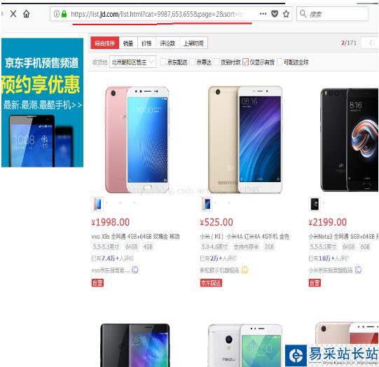 因為要獲取不同頁面的所有手機圖片,所以我們要跳轉到不同頁面觀察頁面地址的規(guī)律,這里觀察第二頁頁面