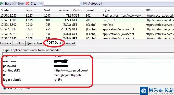 這個(gè)我就舉個(gè)例子好了,以verycd為例,先找到自己發(fā)的POST請求,以及POST表單項(xiàng):