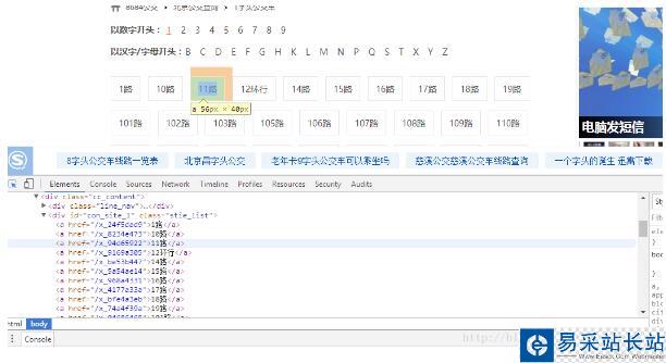 2、接著往下,發現每1路的鏈接都在<div id="con_site_1" class="site_list"> 的<a>里面,取出里面的herf即為線路網址,其內容即為線路名稱,代碼: