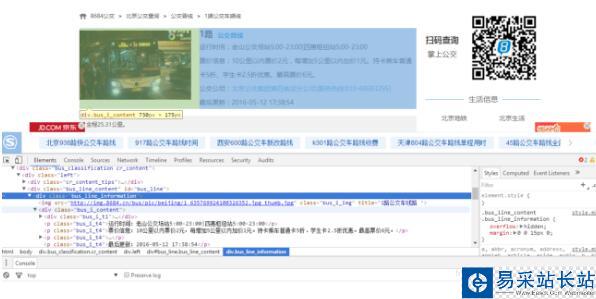 href = a['href'] #取出a標簽的href 屬性html = all_url + hrefsecond_html = requests.get(html,headers=headers)#print (second_html.text)Soup2 = BeautifulSoup(second_html.text, 'lxml') all_a2 = Soup2.find('div',class_='cc_content').find_all('div')[-1].find_all('a') # 既有id又有class的div不知道為啥取不出來,只好迂回取了3、打開線路鏈接,就可以看到具體的站點信息了,打開頁面分析文檔結構后發現:線路的基本信息存放在<div class="bus_i_content">里面,而公交站點信息則存放在<div class="bus_line_top">及<div class="bus_line_site">里面,提取代碼: