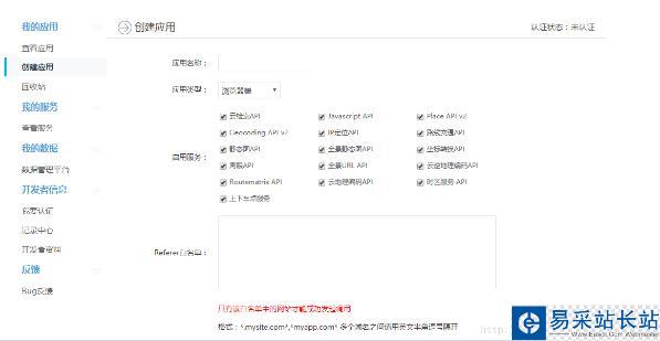 選擇“創(chuàng)建應用”-應用類型勾選“瀏覽器端”–勾選所用到的服務(一般全選即可),此時就創(chuàng)建好了應用賬號,得到“AK”