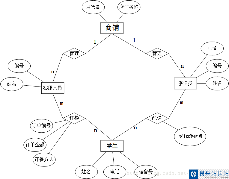 (4)數據統(tǒng)計:在數據庫中編寫相應的存儲過程,輸入店鋪名稱即可select其所管理的派送員和客服人員。