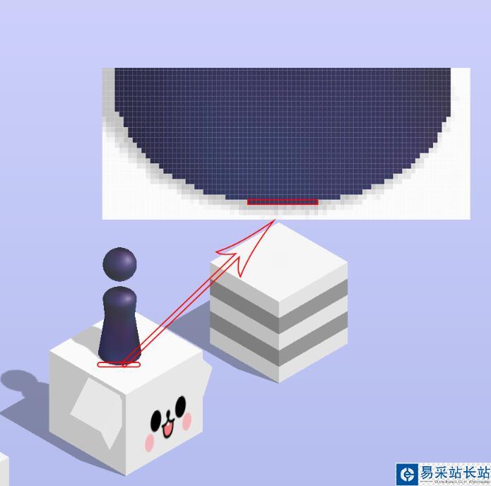 我們以人偶最底部的一行的中心作為人偶的位置,如下圖所示: