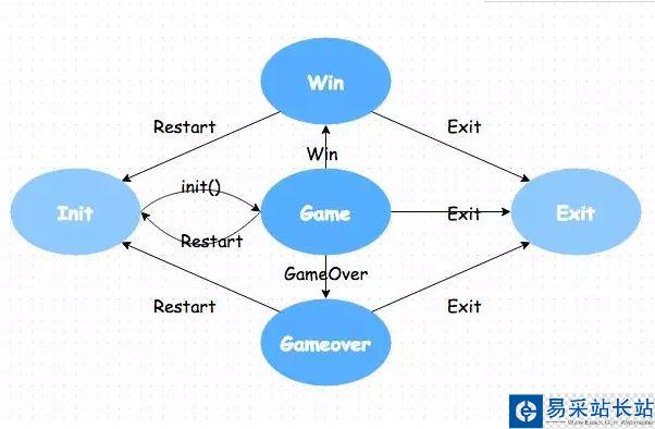 Init: init()Game: game()Win: lambda: not_game('Win')Gameover: lambda: not_game('Gameover')Exit: 退出循環