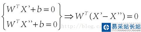 在(圖三)中,青色菱形表示超面,Xn為數(shù)據(jù)集中一點(diǎn),W是超面權(quán)重,而且W是垂直于超面的。證明垂直很簡(jiǎn)單,假設(shè)X'和X''都是超面上的一點(diǎn),