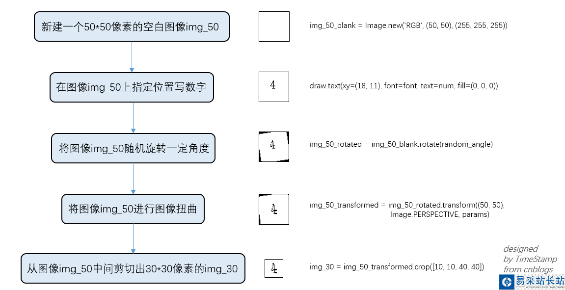 我是利用random生成隨機數1-9,然后PIL寫到圖像上,然后經過旋轉、扭曲處理,得到“手寫體”,這里沒有加干擾線和干擾點;