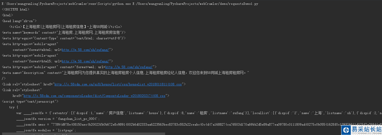 import requestsheader={'User-Agent':'Mozilla/5.0 (Windows NT 6.1; WOW64) AppleWebKit/537.36 (KHTML, like Gecko) Chrome/55.0.2883.87 Safari/537.36'}res=requests.get('http://sh.58.com/zufang/',headers=header)try: print(res.text);except ConnectionError: print('訪問被拒絕!!!')結果如下: