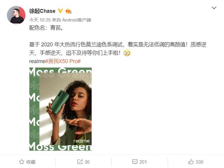 realmeX50 Pro青苔色亮相 今天下午