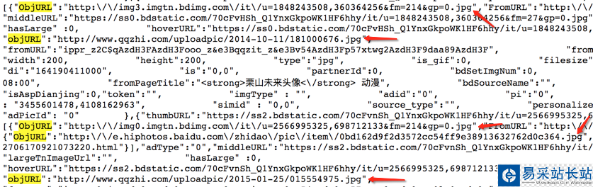 通過分析可以知道,前面兩個是縮小的版本,hoverURL 是鼠標移動過后顯示的版本,objURL 應該是我們需要的,可以分別打開這幾個網址看看,發(fā)現(xiàn) objURL 的那個最大最清晰。