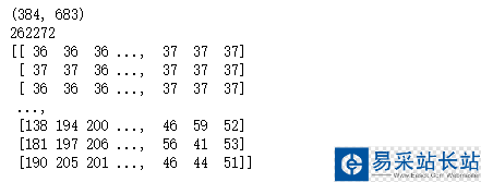 上面提到了兩種獲取灰度圖的方式,讀進來的灰度圖的矩陣格式是(高度,寬度)。