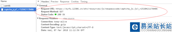 多了一個很奇妙的東西,此時,這里就是驗證碼驗證的網址,那么我們是不是應該記錄下來呢?很簡單,到Headers里面就全都看得到了