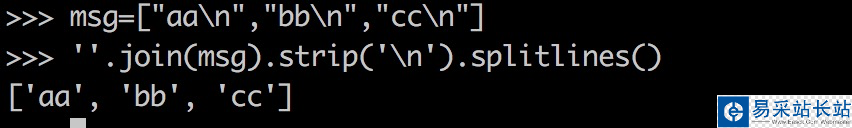 既然f.readlines()返回的是列表,而strip是字符串的屬性,不難想到只要我們將f.readlines()返回的列表轉(zhuǎn)換成字符串就能 用strip這個屬性了。那么怎么將列表轉(zhuǎn)為字符串呢?這里用的是字符串的join屬性。