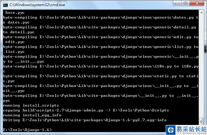 說明:Django安裝命令實際是將Django復制到本地Python安裝目錄E:/Tools:Python-1.6/Lib/site-packages下。