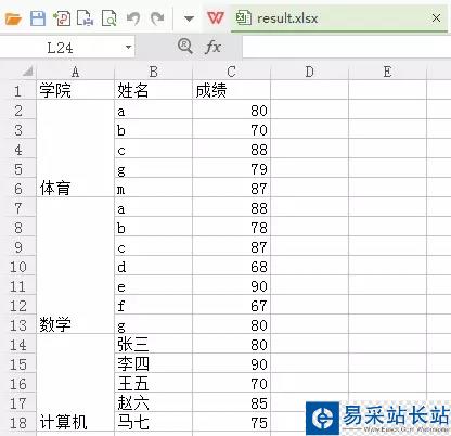 現(xiàn)在想把這些Excel表格合并成為一個表格,并且根據(jù)需要把合適的“學院”列進行合并。
