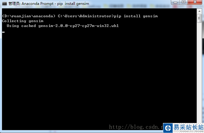在anaconda命令窗口中,輸入pip install gensim