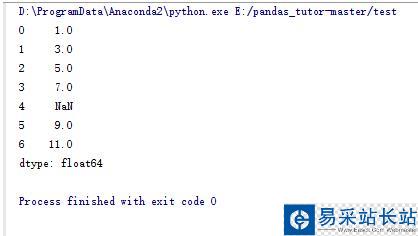 import numpy as np import pandas as pd s_data = pd.Series([1,3,5,7,np.NaN,9,11])#pandas中生產序列的函數,類似于我們平時說的數組 print s_data