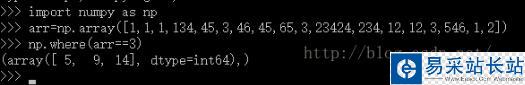 在numpy的ndarray類型中,似乎沒有直接返回特定索引的方法,我只找到了where函數(shù),但是where函數(shù)對(duì)于尋找某個(gè)特定值對(duì)應(yīng)的索引很有用,對(duì)于返回一定區(qū)間內(nèi)值的索引不是很有效,至少我沒有弄明白應(yīng)該如何操作尷尬。下面先說一下where函數(shù)的用法吧。