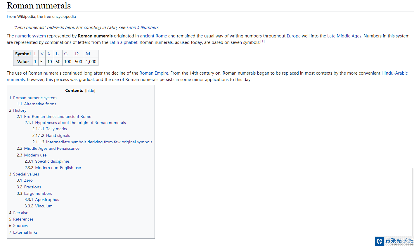 題目很簡單,如果之前也做過這種題目的話,相信對于什么是羅馬數(shù)字就不會很陌生了,羅馬數(shù)字是很古老的計數(shù)方法,現(xiàn)在的一些地方還有見到它的使用,下面簡單貼兩張維基百科的圖片簡單回顧一下羅馬數(shù)字: