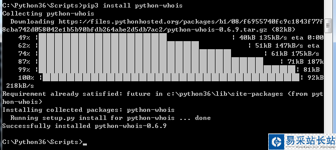 本機Python3環境下適用pip3安裝python-whois模塊如下圖所示: