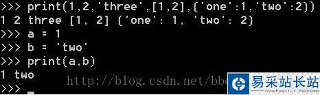 1. print可以直接輸出各種格式的數(shù)值,也可以輸出各種數(shù)據(jù)類型的變量,如下所示: