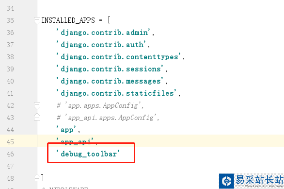 'debug_toolbar.middleware.DebugToolbarMiddleware',# 結尾一定要添加 “ , ” 逗號