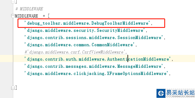 中間件添加完成之后,就該添加 django-debug-toolbar的中間件了。