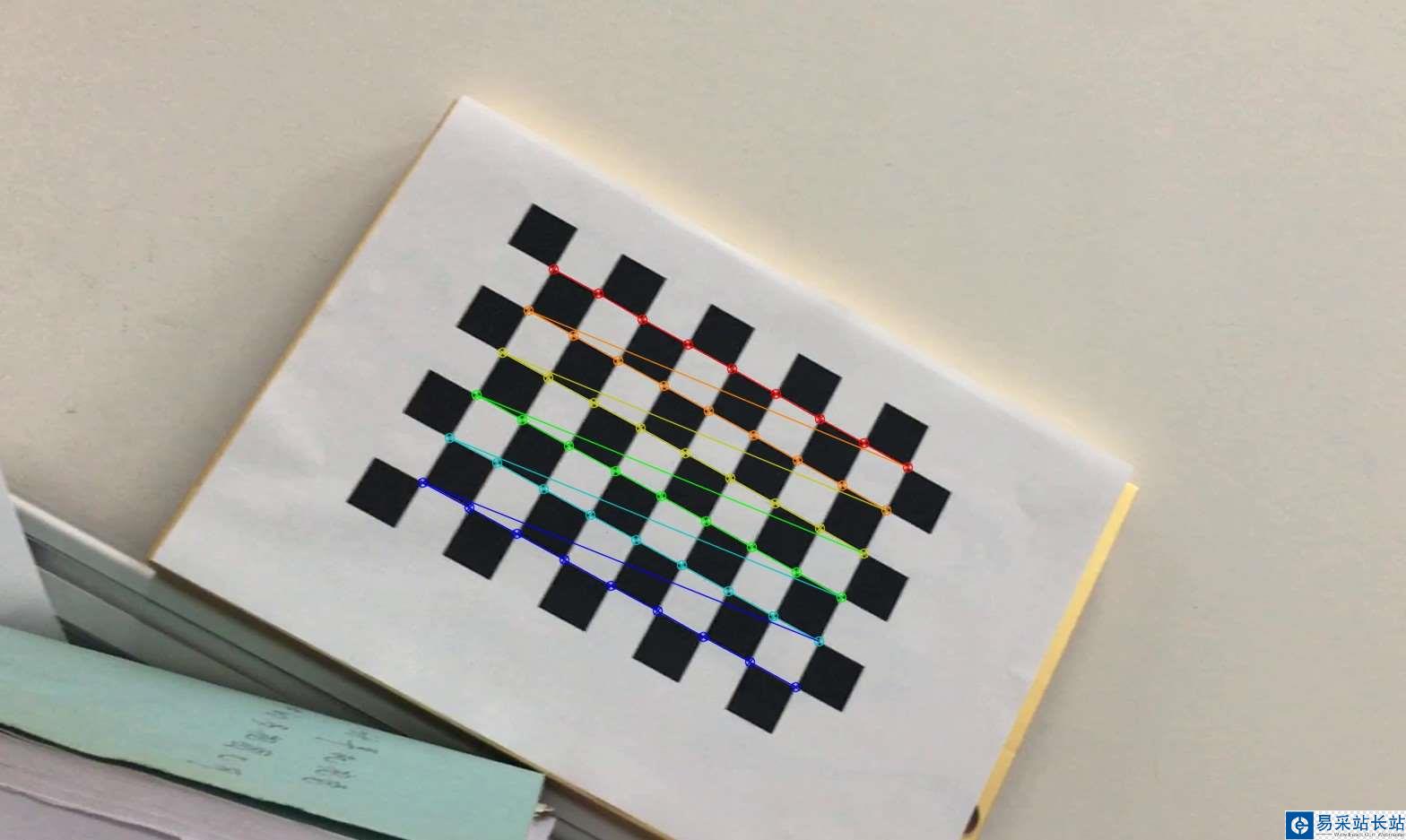 找到角點后,我們可以使用cv2.cornerSubPix()可以得到更為準確的角點像素坐標。我們也可以使用cv2.drawChessboardCorners()將角點繪制到圖像上顯示。如下圖所示: