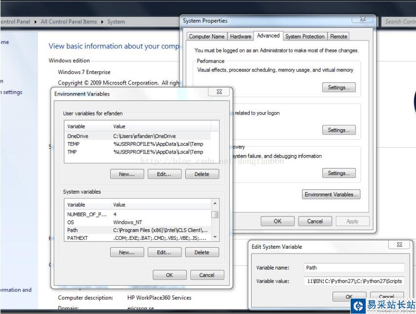 依次點擊我的電腦,Properties,接著點擊高級系統設置,環境變量,然后把C:/Python27/Scripts路徑添加到變量值里面就行了。
