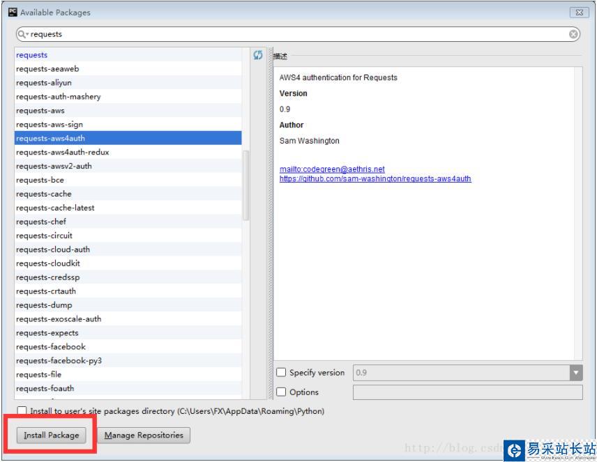 4. 在搜索框中搜索對應想安裝的庫或者模塊,點擊左下方“Install package”就行了。如果安裝完成,該庫顯示字體顏色會變成藍色,并且在上一個界面羅列出你已安裝的庫;