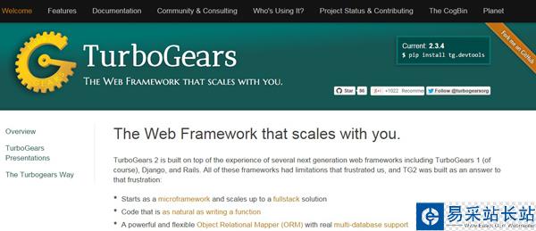 TurboGears 開發人員稱這個項目是一個 “大框架(megaframework)”,這是因為它是由現有的子項目構成的。TurboGears 可以幫助將很多主要組件集成在一起: