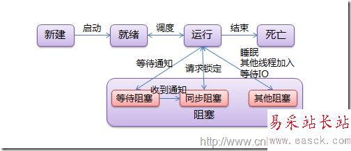 等待阻塞是指等待其他線程通知的狀態(tài),線程獲得條件鎖定后,調(diào)用“等待”將進(jìn)入這個狀態(tài),一旦其他線程發(fā)出通知,線程將進(jìn)入同步阻塞狀態(tài),再次競爭條件鎖定;