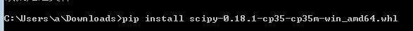 1) 在命令行窗口輸入python可以查看自己安裝Python版本號(hào),操作系統(tǒng)位數(shù),例如筆者的配置為:Python3.5,64位,因此下載sci-0.18.1-cp35-cp35m-win_amd64.whl。