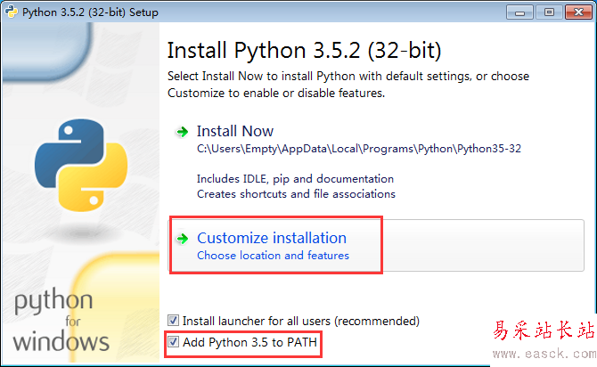 一般采用自定義安裝比較好,不然自動安裝會把環境安裝到個人目錄里,有時要找起來很麻煩