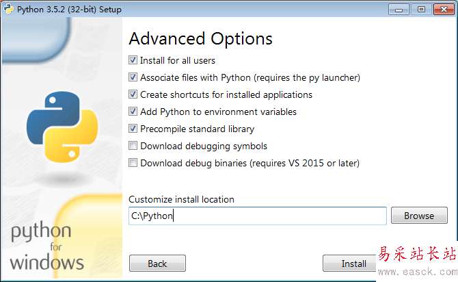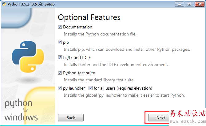 1)上python官網下載python運行環境(//www.jb51.net/softs/416037.html),目前比較穩定的是python-3.5.2