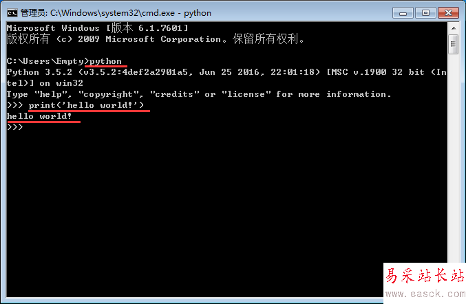 我們可以輸入print('hello world!')來測試一下python運行,如下圖