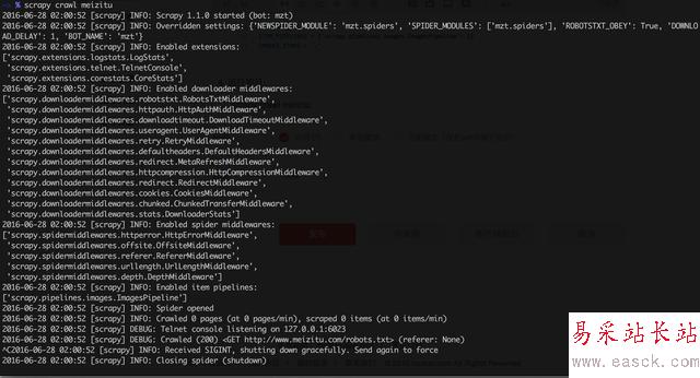 scrapy startproject mztcd mztscrapy genspider meizitu meizitu.com