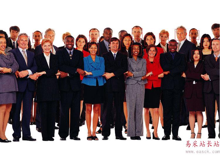#!/usr/bin/env python#coding=utf-8import osfrom PIL import Image, ImageDrawimport cvdef detect_object(image): '''檢測圖片,獲取人臉在圖片中的坐標''' grayscale = cv.CreateImage((image.width, image.height), 8, 1) cv.CvtColor(image, grayscale, cv.CV_BGR2GRAY) cascade = cv.Load("/usr/share/opencv/haarcascades/haarcascade_frontalface_alt_tree.xml") rect = cv.HaarDetectObjects(grayscale, cascade, cv.CreateMemStorage(), 1.1, 2, cv.CV_HAAR_DO_CANNY_PRUNING, (20,20)) result = [] for r in rect: result.append((r[0][0], r[0][1], r[0][0]+r[0][2], r[0][1]+r[0][3])) return resultdef process(infile): '''在原圖上框出頭像并且截取每個頭像到單獨文件夾''' image = cv.LoadImage(infile); if image: faces = detect_object(image) im = Image.open(infile) path = os.path.abspath(infile) save_path = os.path.splitext(path)[0]+"_face" try: os.mkdir(save_path) except: pass if faces: draw = ImageDraw.Draw(im) count = 0 for f in faces: count += 1 draw.rectangle(f, outline=(255, 0, 0)) a = im.crop(f) file_name = os.path.join(save_path,str(count)+".jpg") # print file_name a.save(file_name) drow_save_path = os.path.join(save_path,"out.jpg") im.save(drow_save_path, "JPEG", quality=80) else: print "Error: cannot detect faces on %s" % infileif __name__ == "__main__": process("./opencv_in.jpg")轉換效果