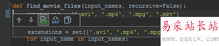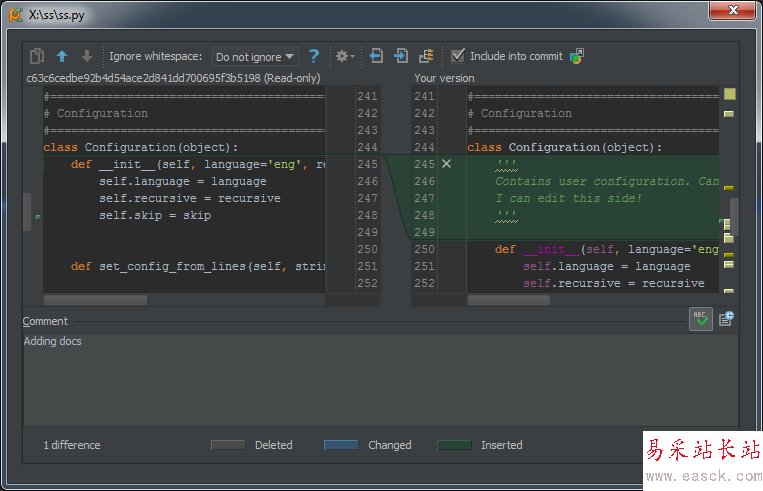 在PyCharm中,你可以對你的改動一覽無余。同時,點擊那個標記,會顯示出之前的內容以及一個工具欄:
